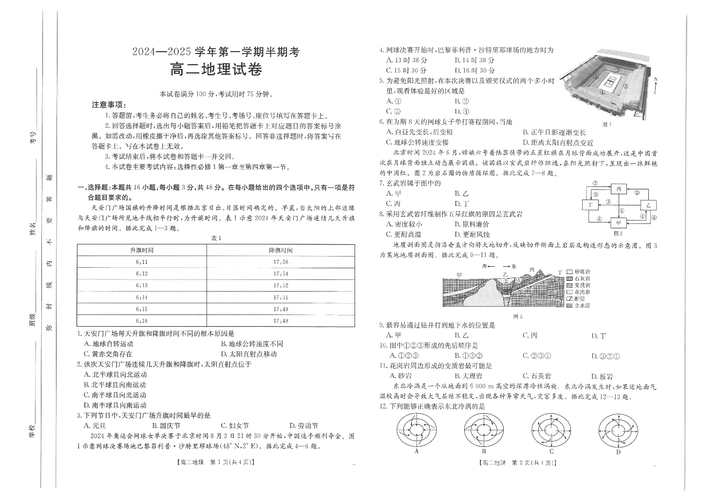 福建省龙岩市非一级达标校2024-2025学年高二上学期11月期中考试 地理