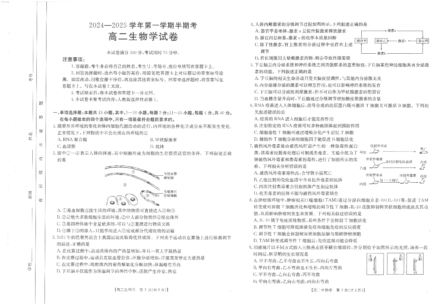 福建省龙岩市非一级达标校2024-2025学年高二上学期11月期中考试 生物