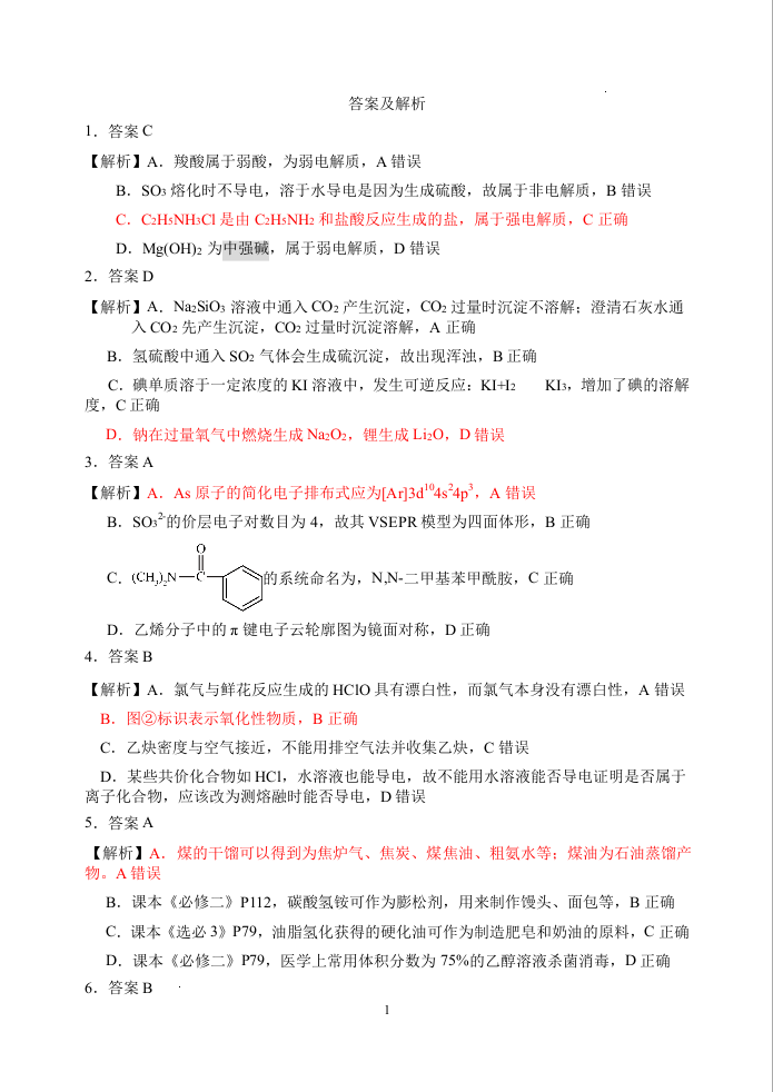 浙江省稽阳联谊学校2024-2025学年高三上学期11月月考 化学答案