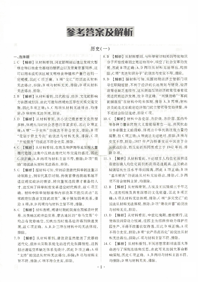 河北省沧州市三校联考2025届高三上学期11月期中考试 历史答案