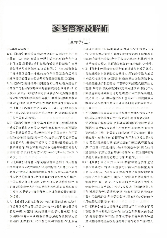 河北省沧州市三校联考2025届高三上学期11月期中考试 生物答案