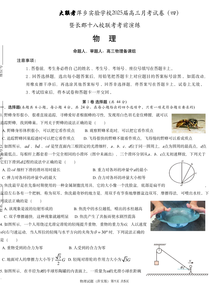 江西省萍乡实验学校2025届高三月考试卷 (四)暨长郡十八校联考模拟考试 物理