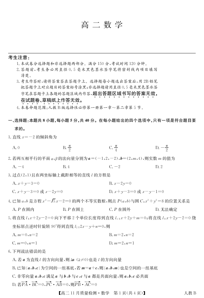 贵州省九师联盟2024-2025学年高二上学期11月联考 数学
