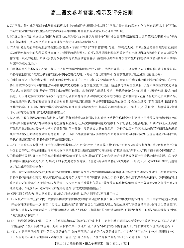 贵州省九师联盟2024-2025学年高二上学期11月联考 语文答案