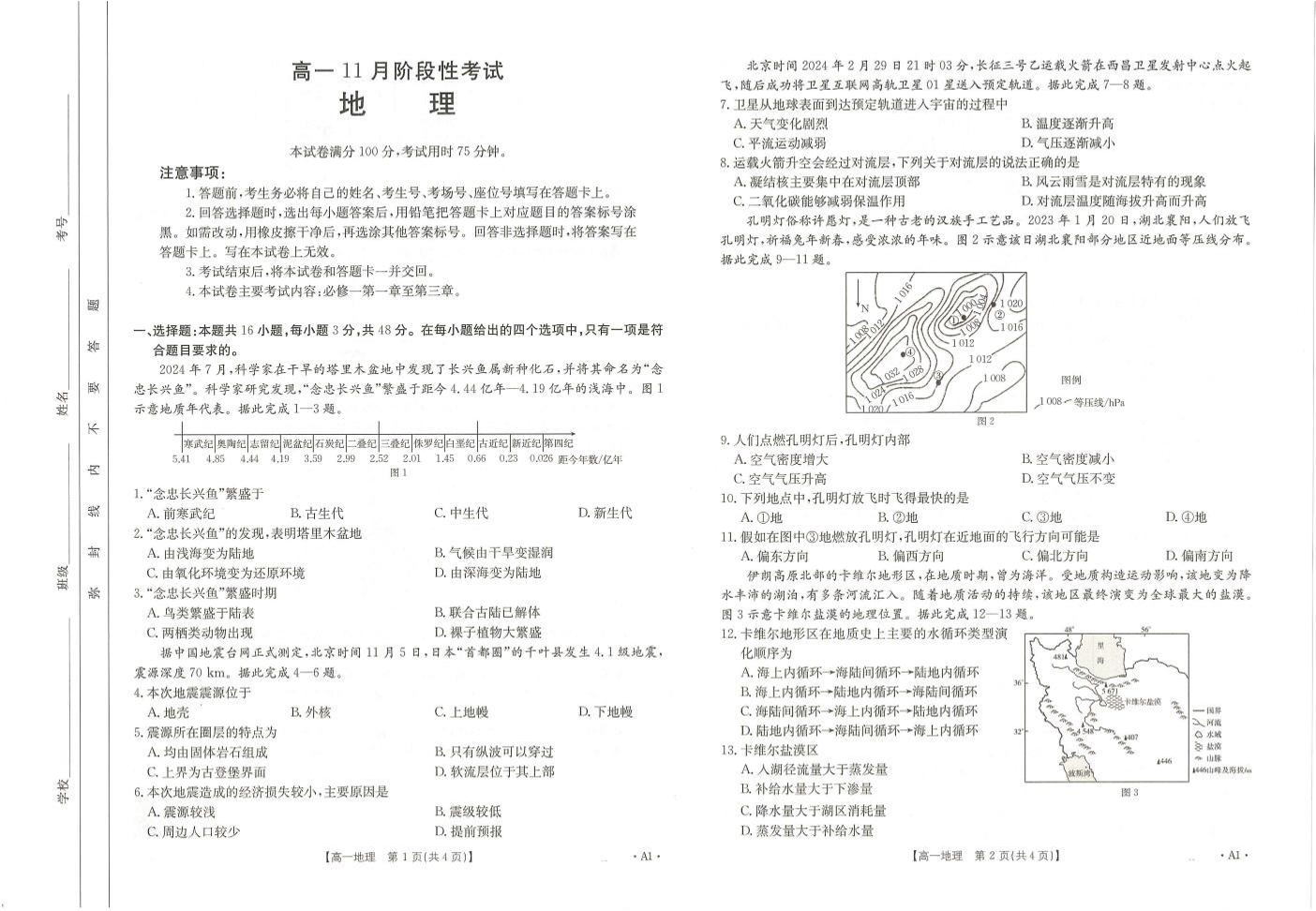 广西名校联盟2024-2025学年高一上学期11月期中阶段性考试 地理