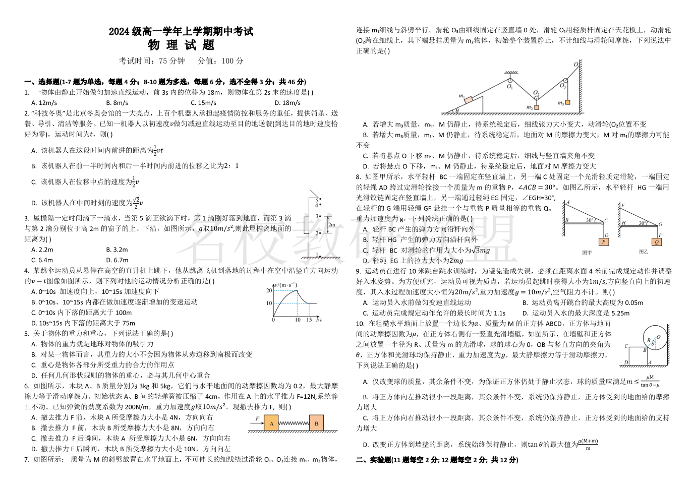 黑龙江省牡丹江市第一高级中学2024-2025学年高二上学期11月期中考试 物理