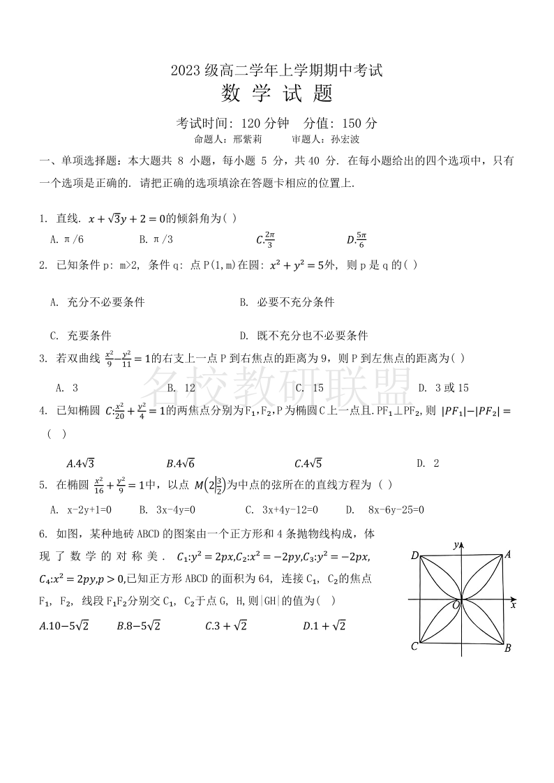 黑龙江省牡丹江市第一高级中学2024-2025学年高二上学期11月期中考试 数学