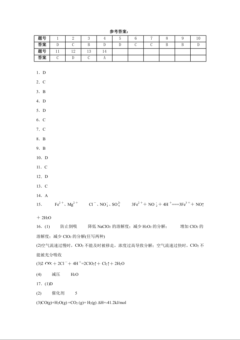湖南省岳阳市临湘市2024年高三上学期期中考试 化学答案