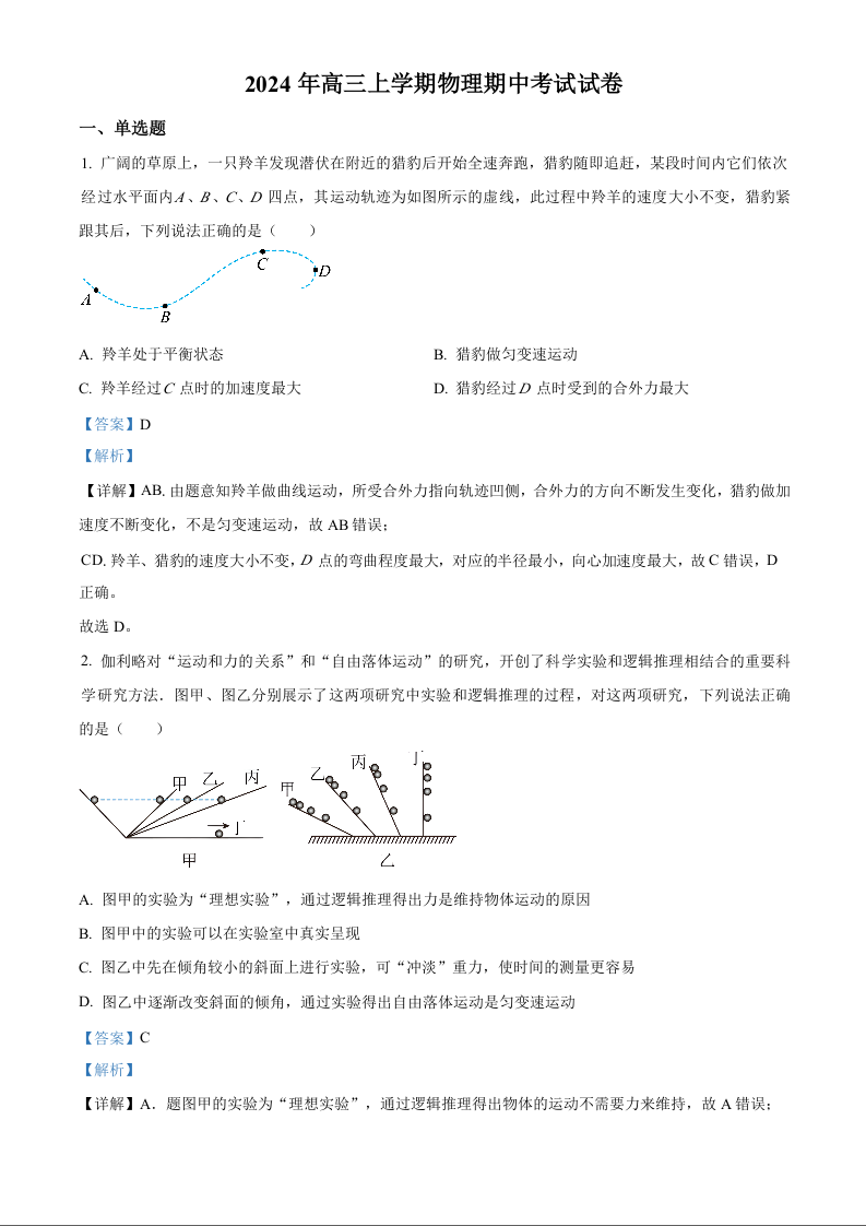 湖南省岳阳市临湘市2024年高三上学期期中考试 物理答案