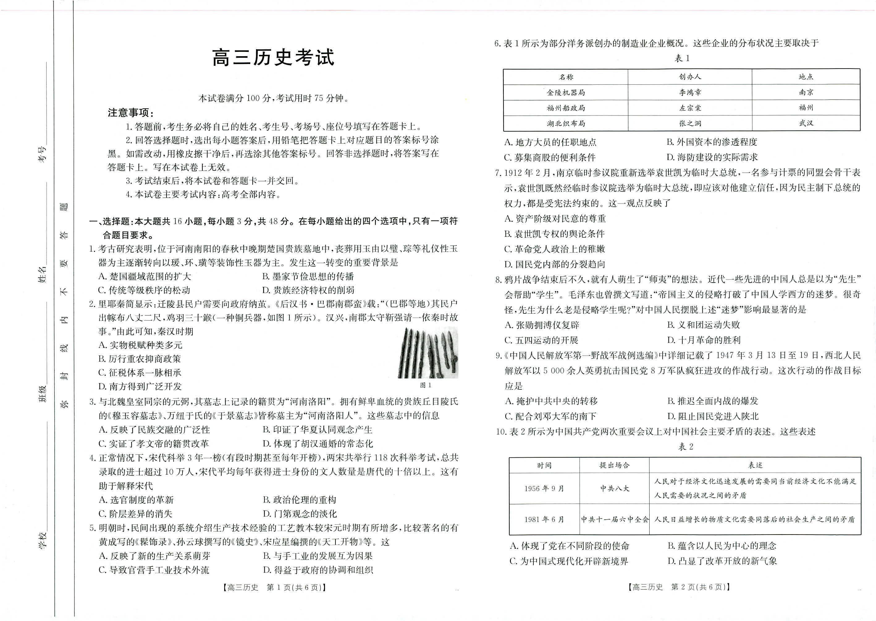 广西部分学校2025届高三11月大联考 历史