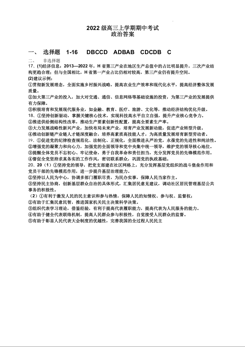 四川省仁寿第一中学校南校区2025届高三上学期11月期中考试 政治答案
