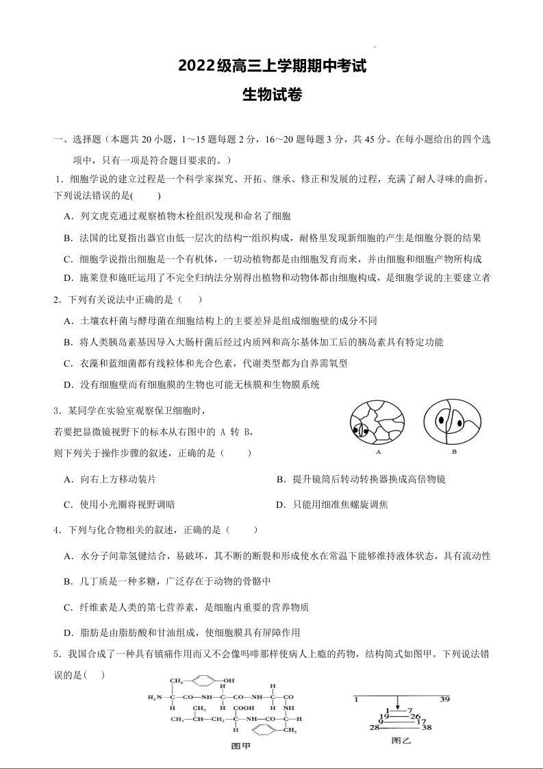 四川省仁寿第一中学校南校区2025届高三上学期11月期中考试 生物