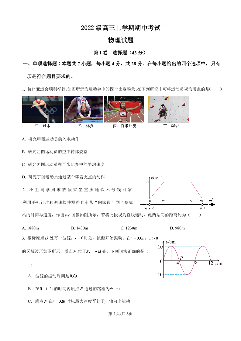 四川省仁寿第一中学校南校区2025届高三上学期11月期中考试 物理