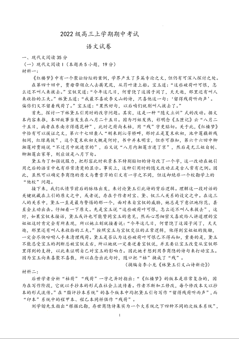 四川省仁寿第一中学校南校区2025届高三上学期11月期中考试 语文