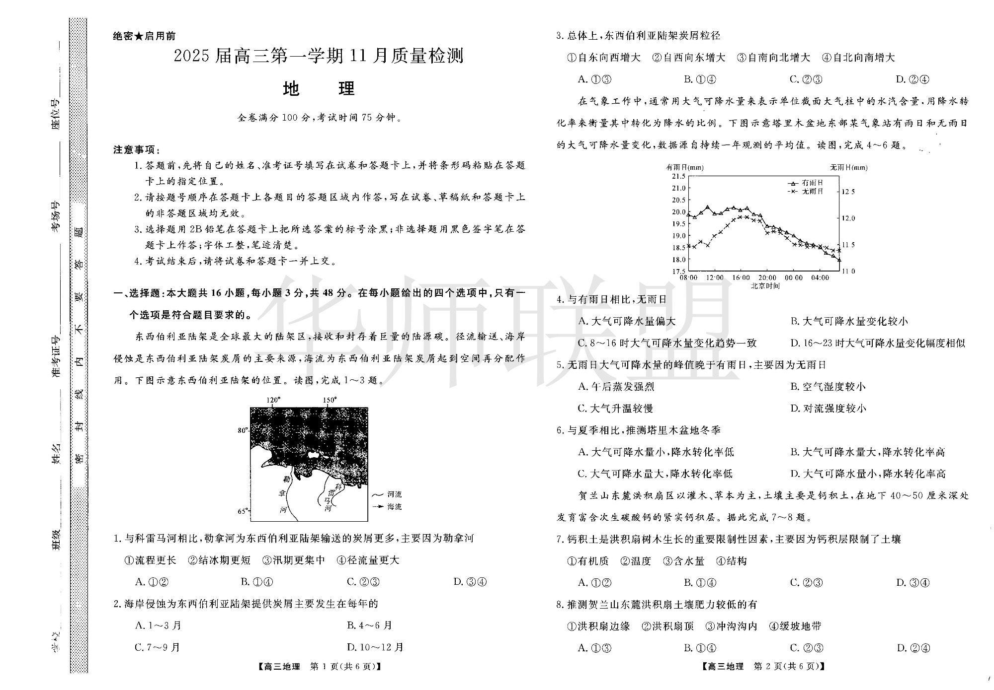 河南省华师联盟2025届高三第一学期11月质量检测 地理