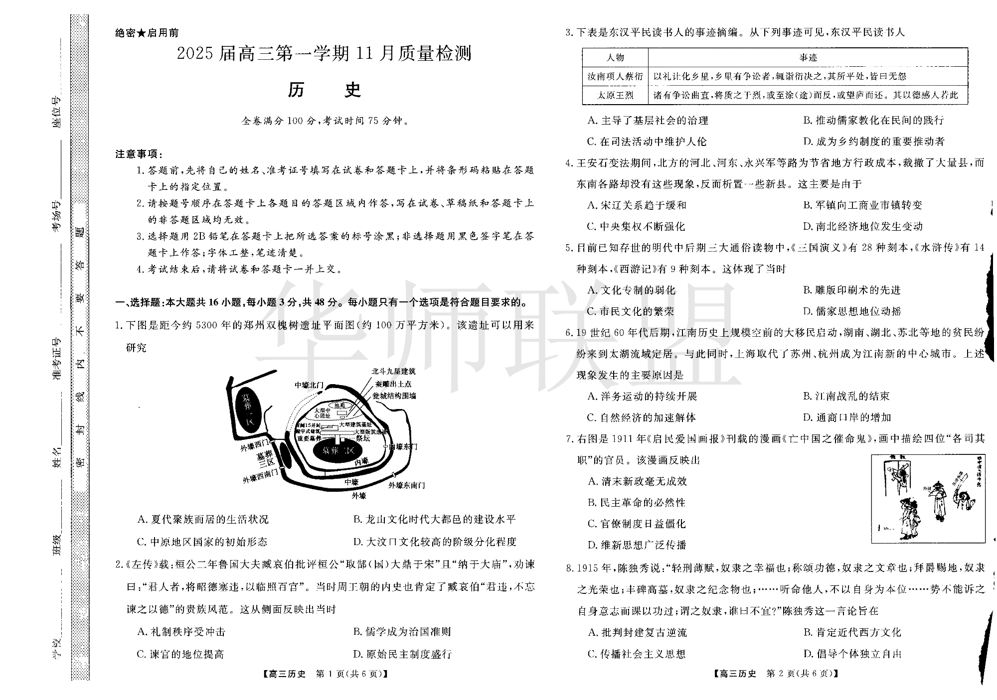 河南省华师联盟2025届高三第一学期11月质量检测 历史
