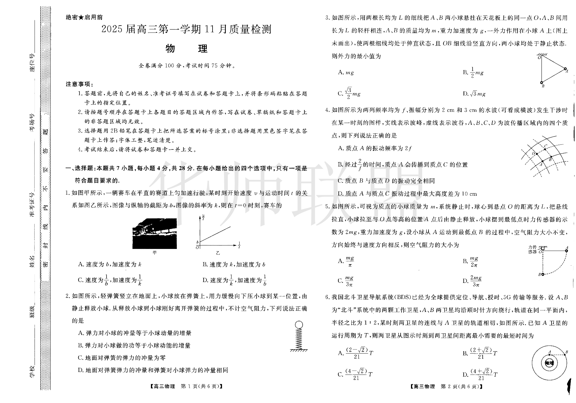 河南省华师联盟2025届高三第一学期11月质量检测 物理