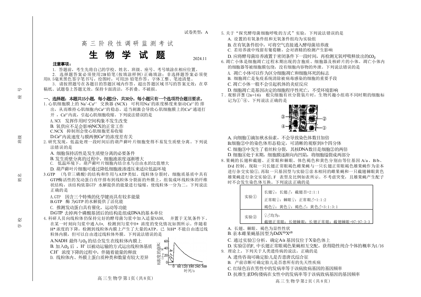 山东省潍坊市2025届高三上学期阶段性调研监测考试 生物