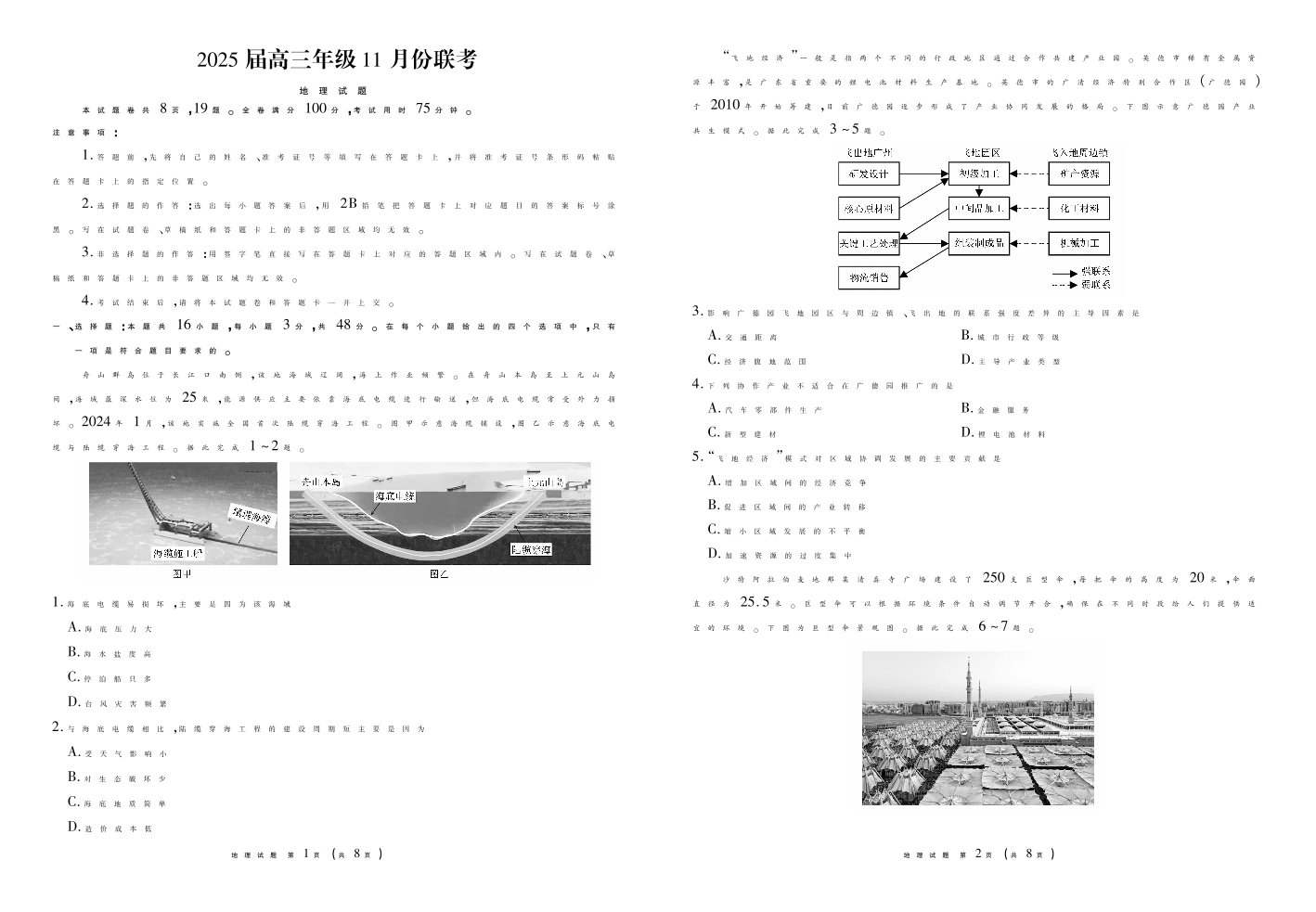 广东省衡水金卷2025届高三上学期11月大联考 地理