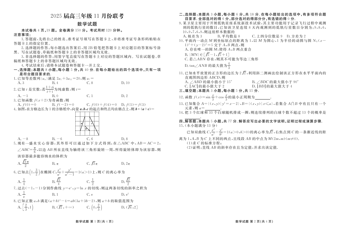 广东省衡水金卷2025届高三上学期11月大联考 数学