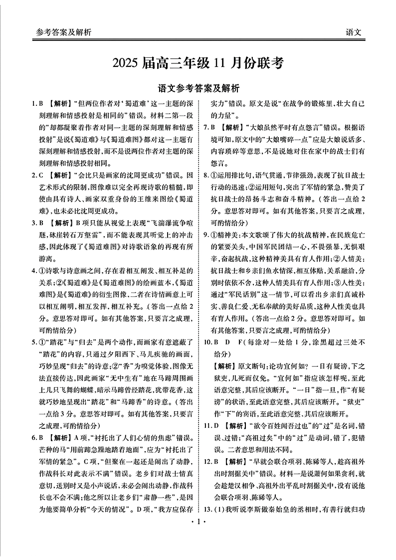 广东省衡水金卷2025届高三上学期11月大联考 语文答案
