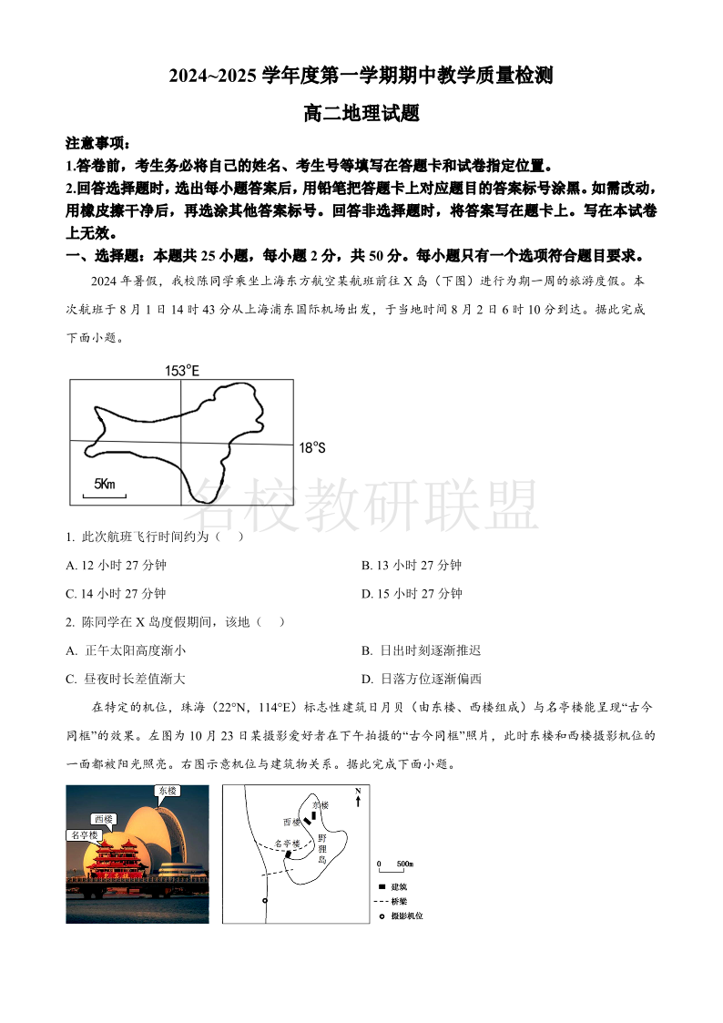 山东省聊城市2024-2025学年高二上学期11月期中考试 地理