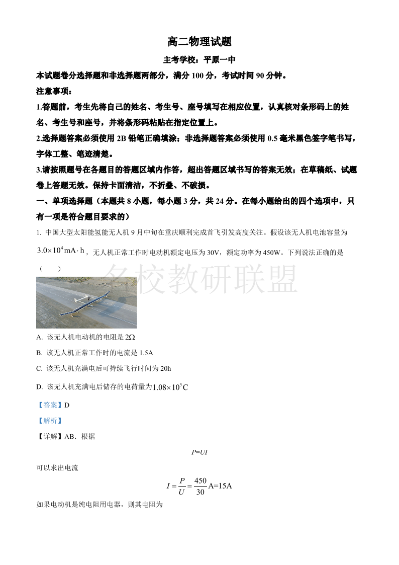 山东省德州市2024-2025学年高二上学期11月期中考试 物理答案