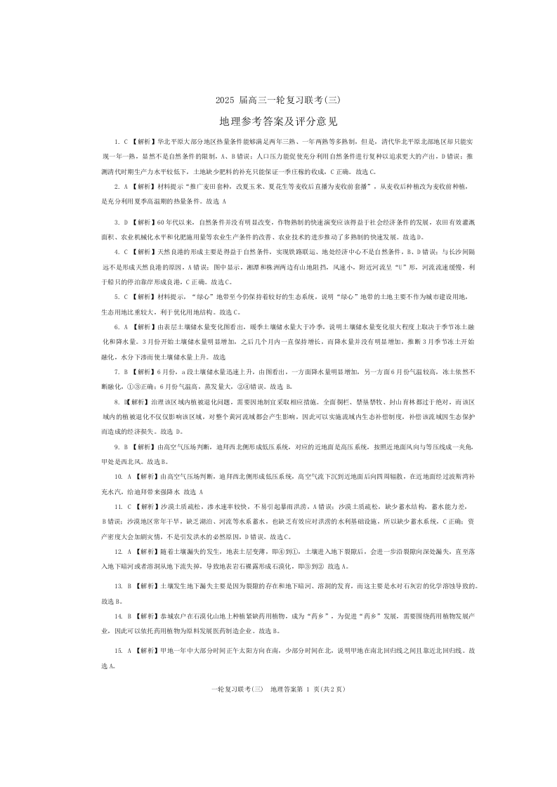 百师联盟2025届高三一轮复习联考(三)地理答案