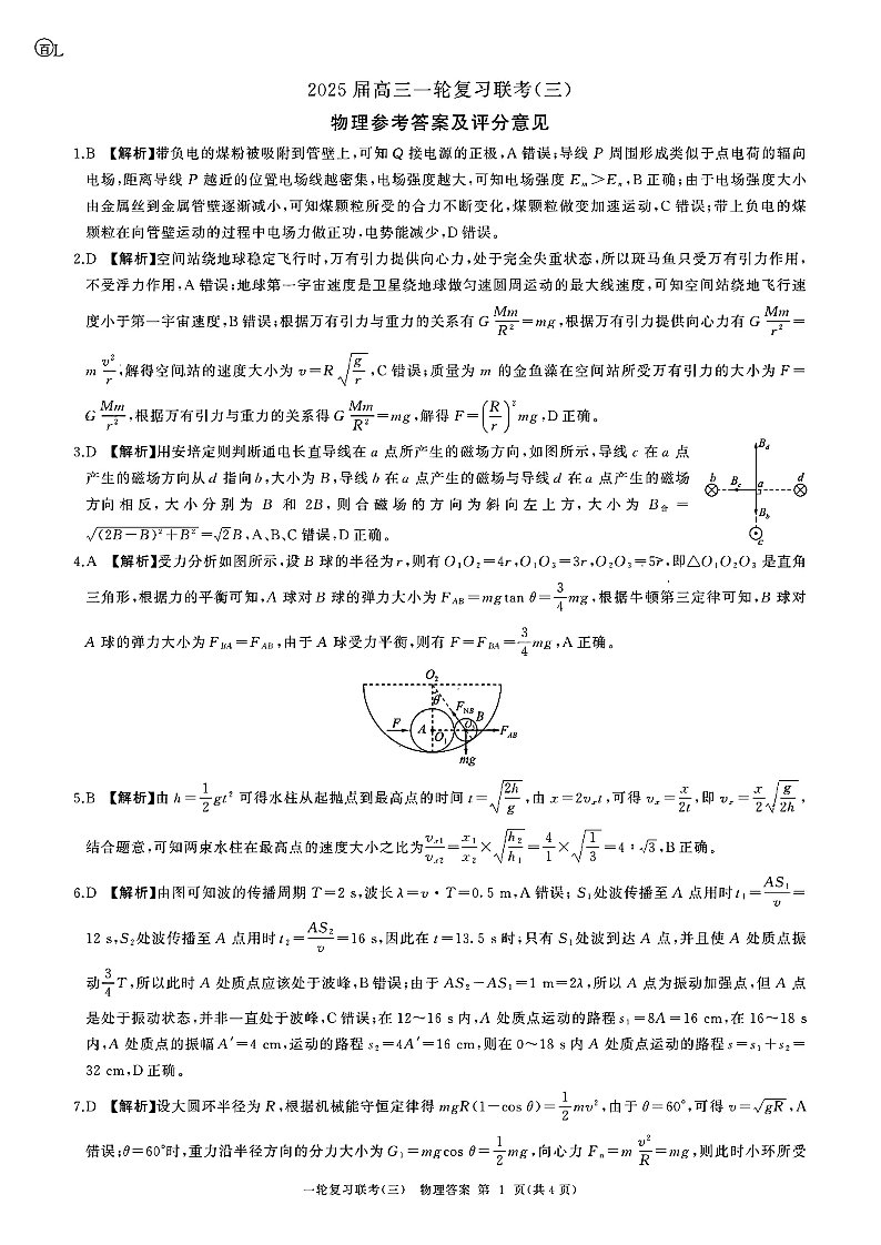 百师联盟2025届高三一轮复习联考(三)物理答案