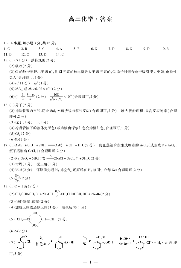 湖南省天一大联考2024-2025学年高三上学期11月联考 化学答案