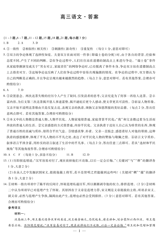 湖南省天一大联考2024-2025学年高三上学期11月联考 语文答案
