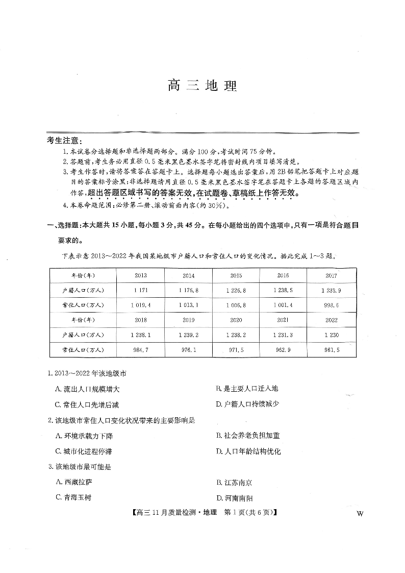 河南省创新发展联盟2024-2025学年高三上学期期中质量检测 地理