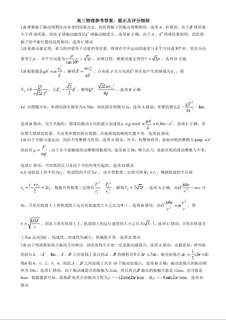 河南省创新发展联盟2024-2025学年高三上学期期中质量检测 物理答案