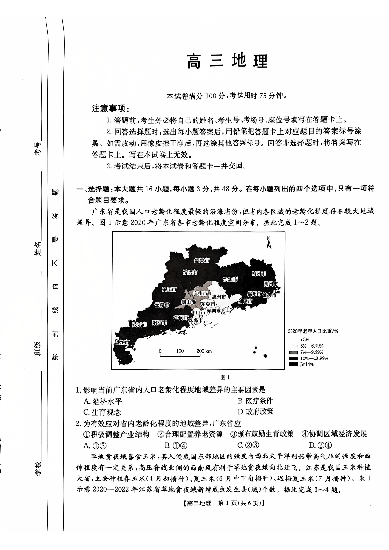 广东省部分高中学校2024-2025学年高三上学期11月期中联考 地理