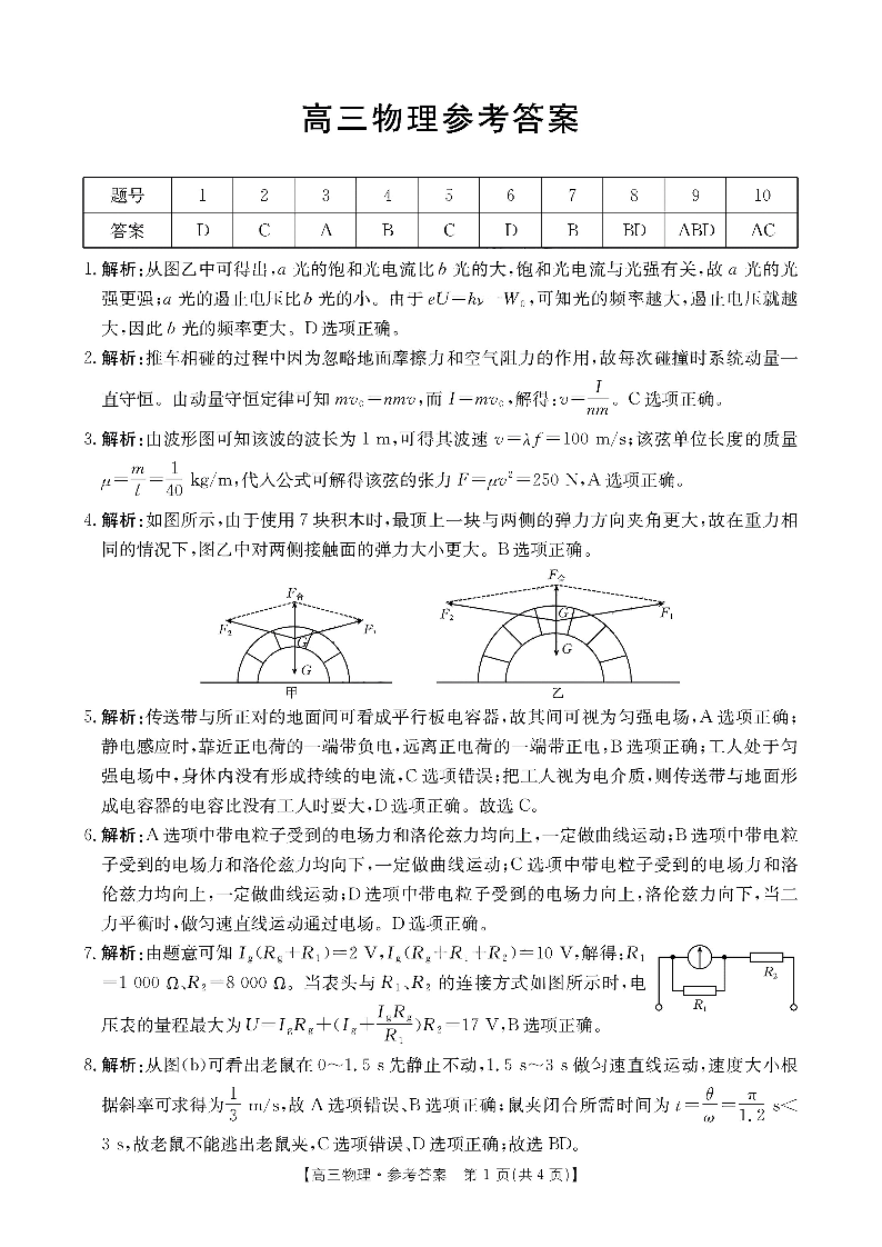 广东省部分高中学校2024-2025学年高三上学期11月期中联考 物理答案