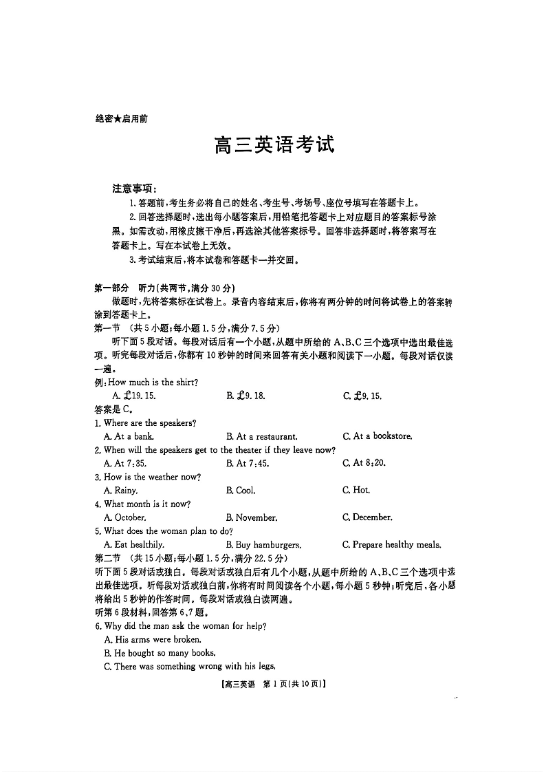 广东省部分高中学校2024-2025学年高三上学期11月期中联考 英语