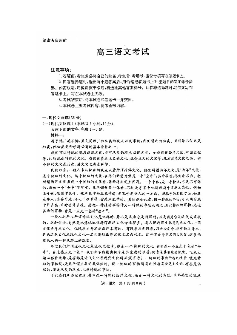 广东省部分高中学校2024-2025学年高三上学期11月期中联考 语文