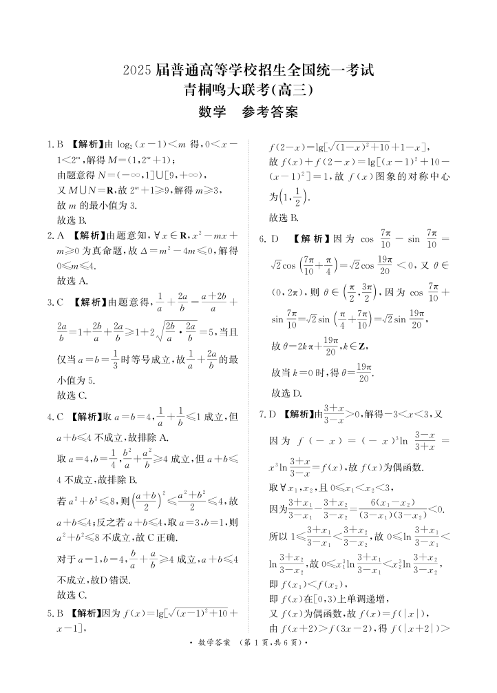 河南省重点高中2025届高三年级青桐鸣11月大联考 数学答案