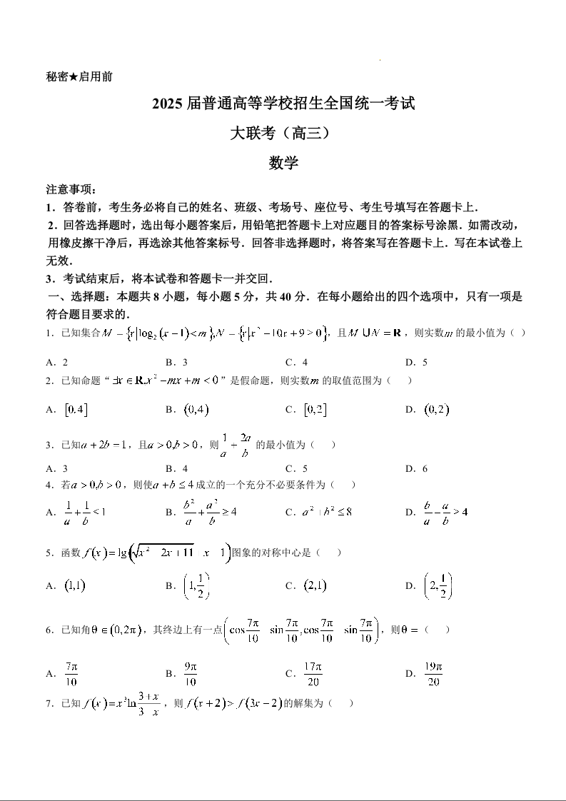 河南省重点高中2025届高三年级青桐鸣11月大联考 数学