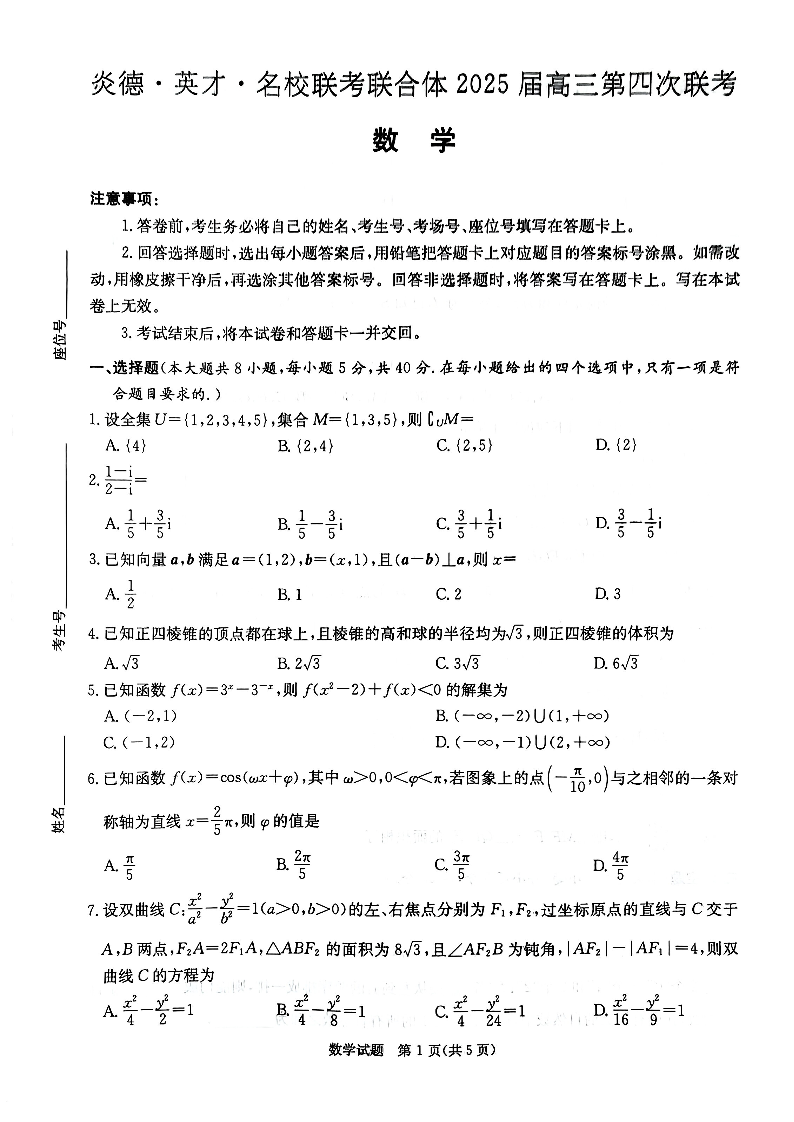 湖南省炎德英才名校联考联合体2025届高三第四次联考 数学