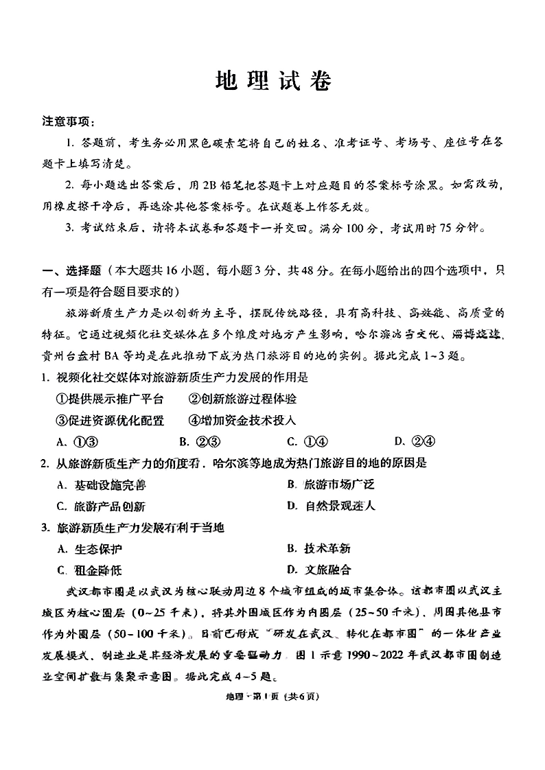 云南师大附中2025届高考适应性月考卷(六)地理