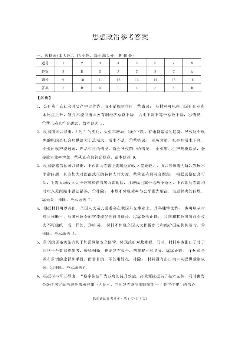 云南师大附中2025届高考适应性月考卷(六)政治答案
