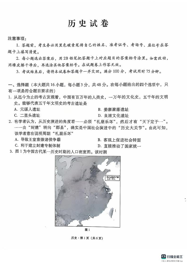云南师大附中2025届高考适应性月考卷(六)历史