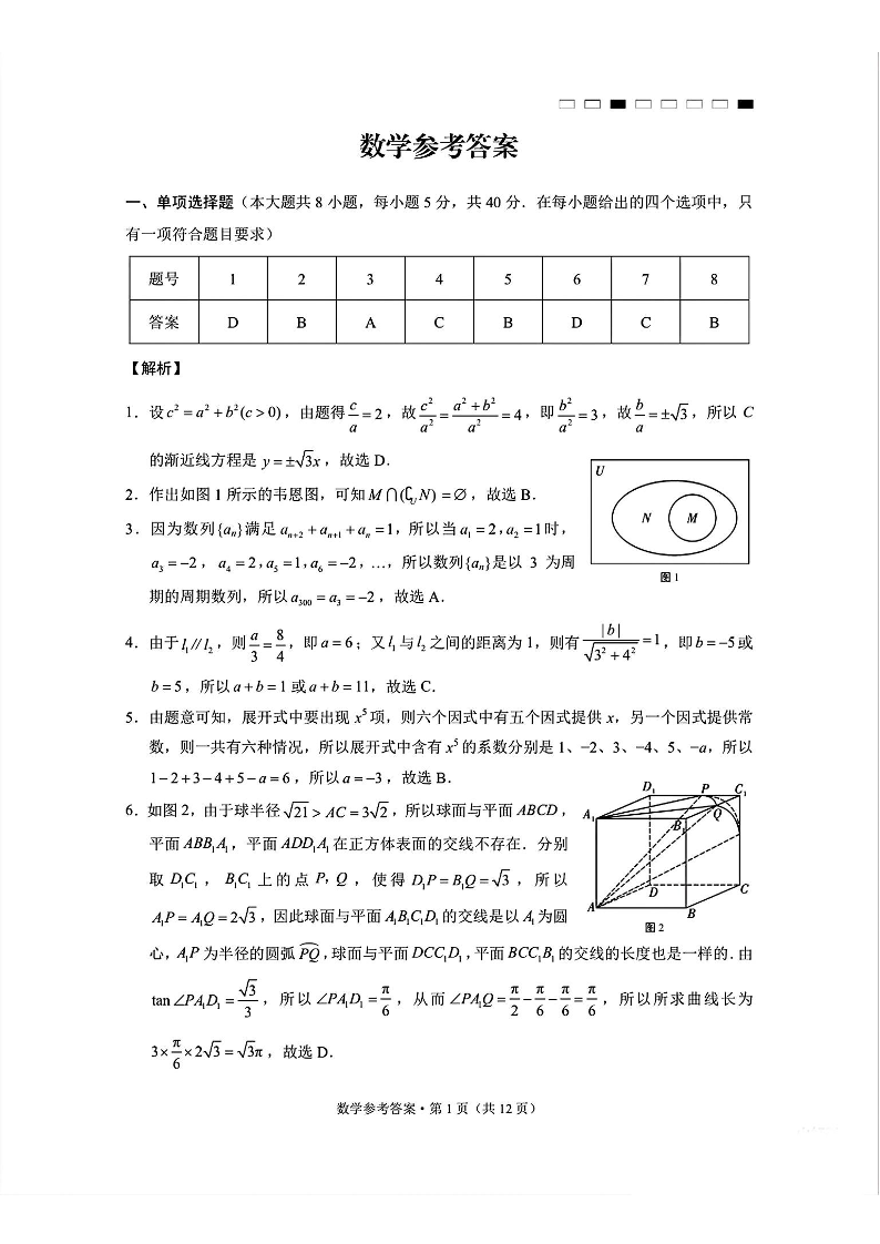 云南师大附中2025届高考适应性月考卷(六)数学答案