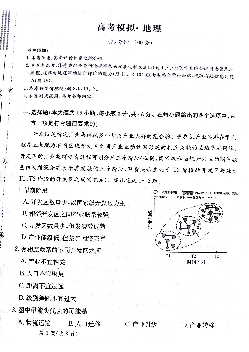 甘肃省靖远县第一中学2024-2025学年高三上学期高考模拟 地理