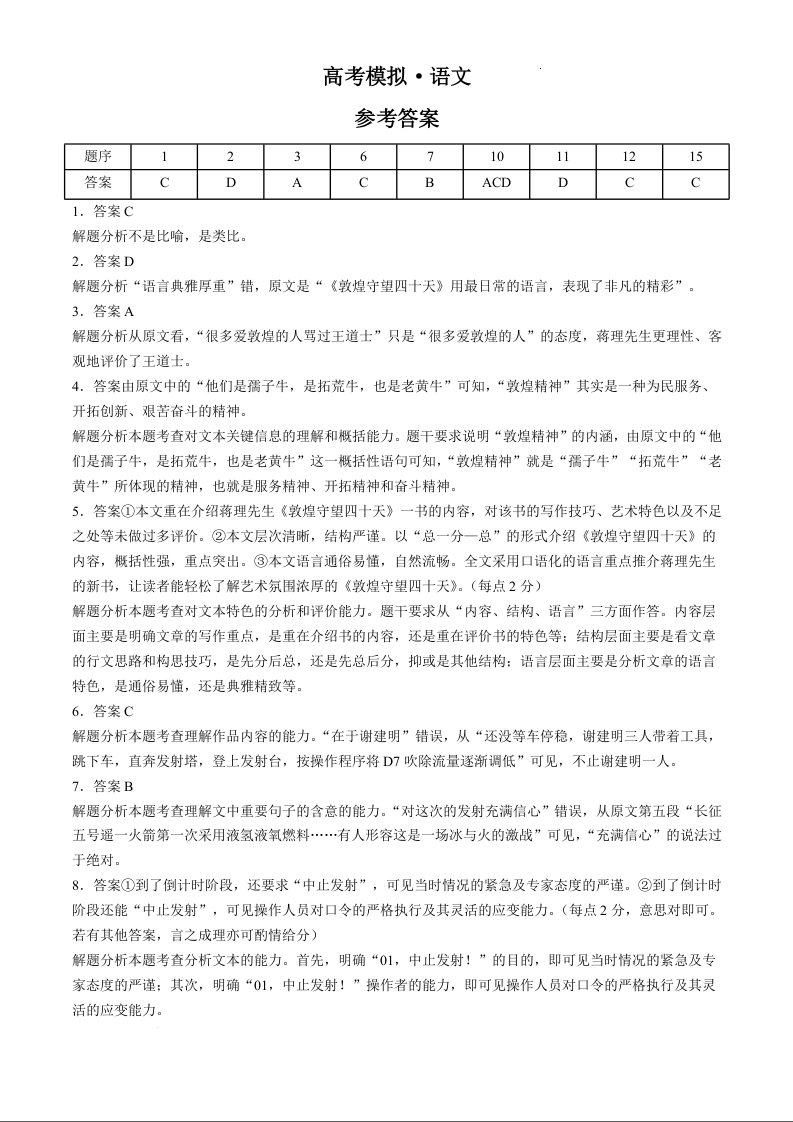 甘肃省靖远县第一中学2024-2025学年高三上学期高考模拟 语文答案