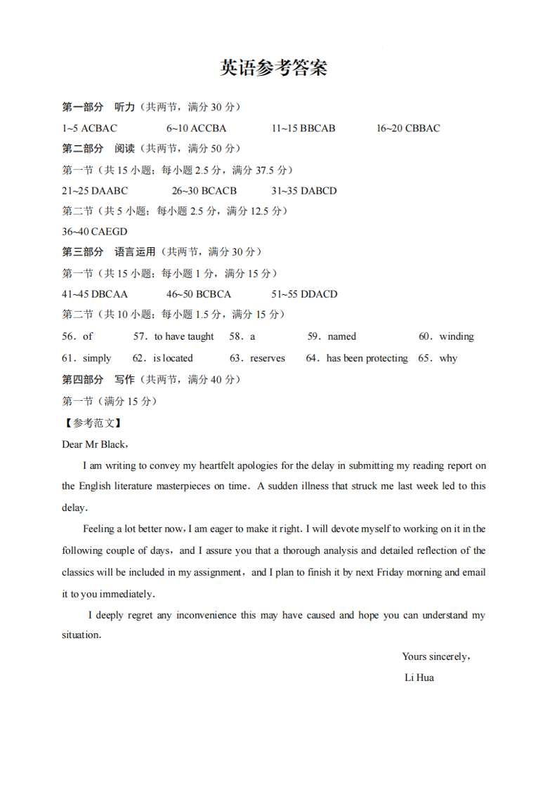 重庆市第一中学2025届高三11月期中考试 英语答案