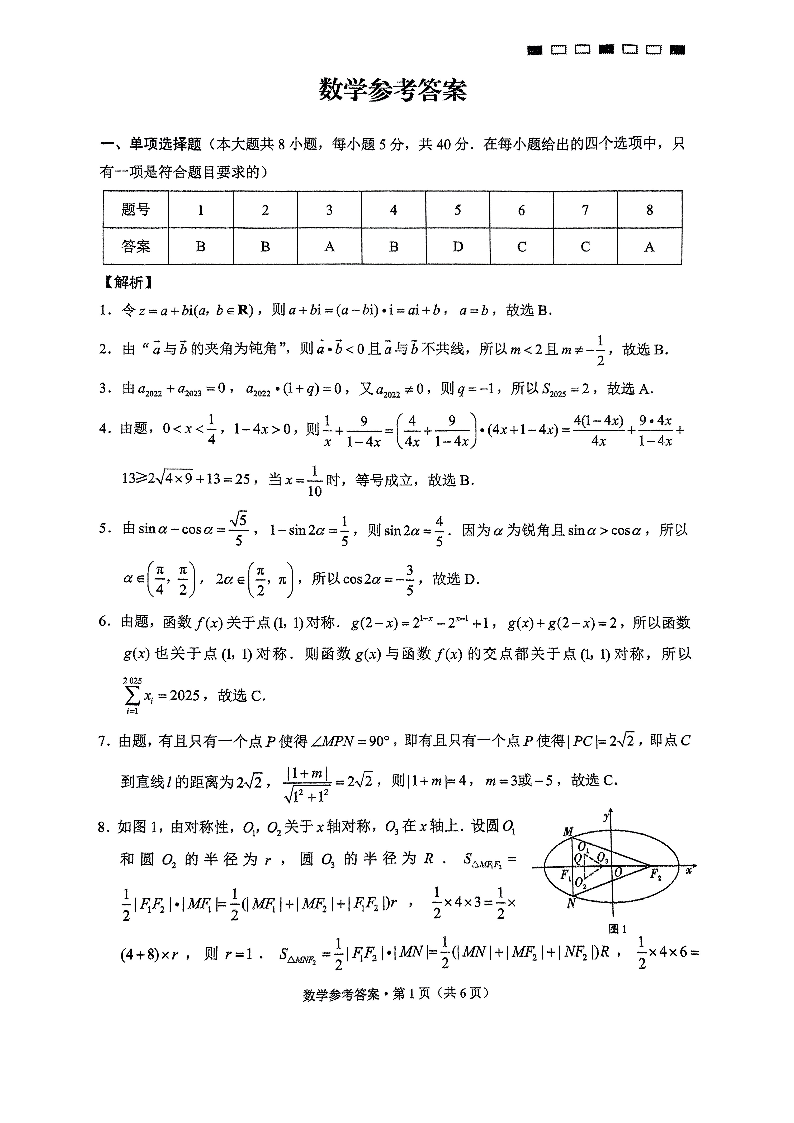 重庆市第一中学2025届高三11月期中考试 数学答案