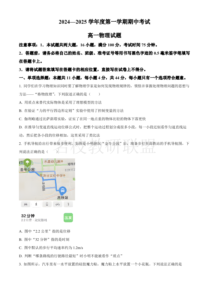江苏省连云港市东海县2024-2025学年高一上学期期中考试 物理