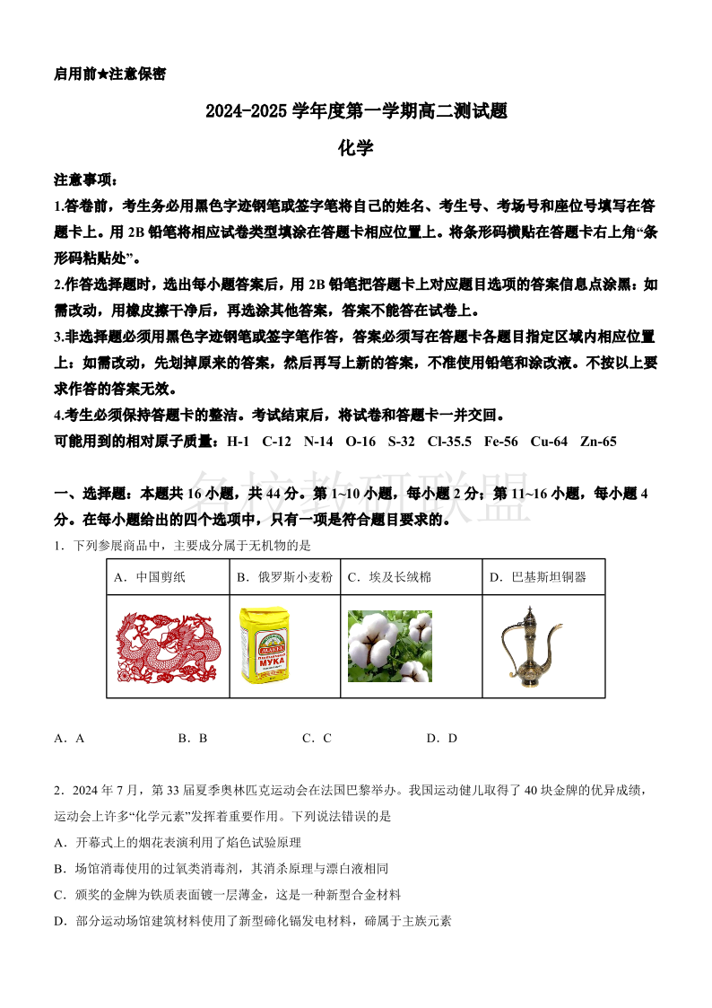 广东省阳江市高新区2024-2025学年高二上学期期中测试 化学